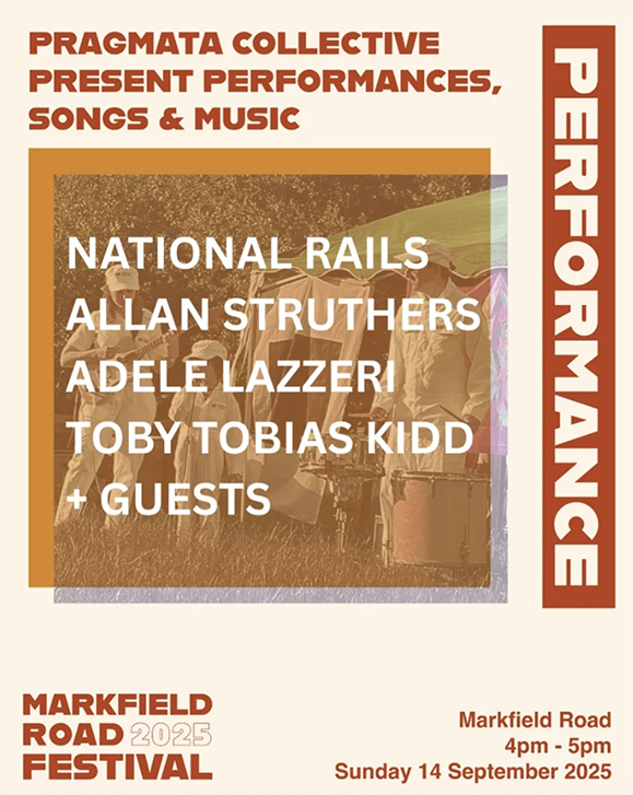 Adele Lazzeri & Toby Tobias Kidd work together as Pragmata Collective, a micro-institution staging experimental art events and interventions, often involving music, community, and performance.